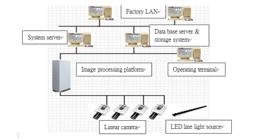 Surface quality online inspection system detects defect on finished/semi-finished products through machine vision technology, scans surface line by line through industrial linear camera so as to form image of finished/semi-finished products surface, then collects information of location, type and size about defect through algorithm analysis, which is convenient for clients to analyze the cause of flaw, eliminate flaws and improve quality. Object of system includes: steel: cold-rolled sheet, hot-rolled sheet, galvanized sheet, stainless steel plate; tinsel: aluminum foil, copper foil; copper strips, copper foil sheet, aluminum sheet, copper sheet, aluminum strips; metal composite products: precious metal composite products, thermometal composite products, etc.